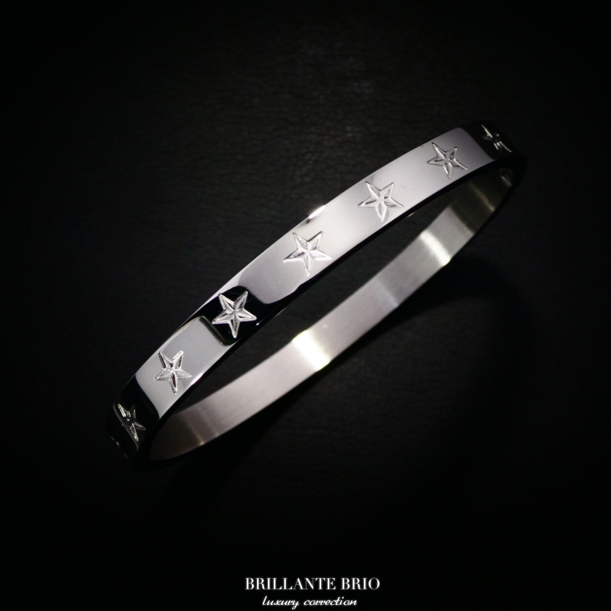 プレーンのブレスレットに星の型押しでデザインを施したオシャレなアイテム!